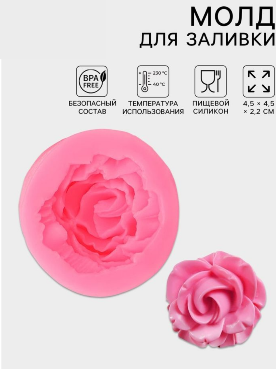 Молд для заливки «Роза», силикон, 4.5×2 см