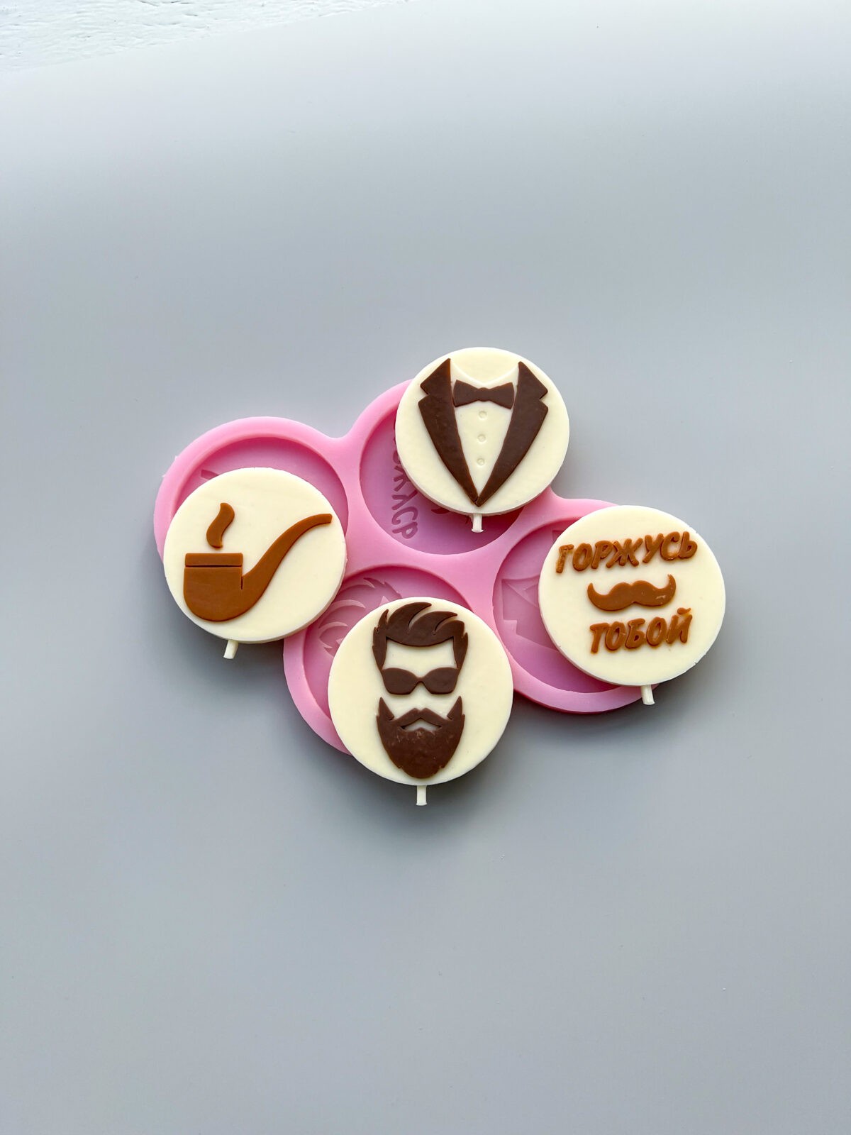Молд «Мужской набор» идеальное решение для творчества. Молд для шоколада подходит для глазури, мастики, марципана. Часто используется как молд для гипса и для эпоксидной смолы, молд для мыла. Молд изготовлен из термостойкого пищевого силикона. Рабочая температура от -30 до +250 градусов. При заливке шоколада в форму иногда требуются: простукивание, наклон, нажим, переворачивание формы для проливки всех полостей фигурки. Для более удобного извлечения фигурки и сохранения всех деталей рекомендуем залитую форму помещать в морозилку на 30-60 минут.
