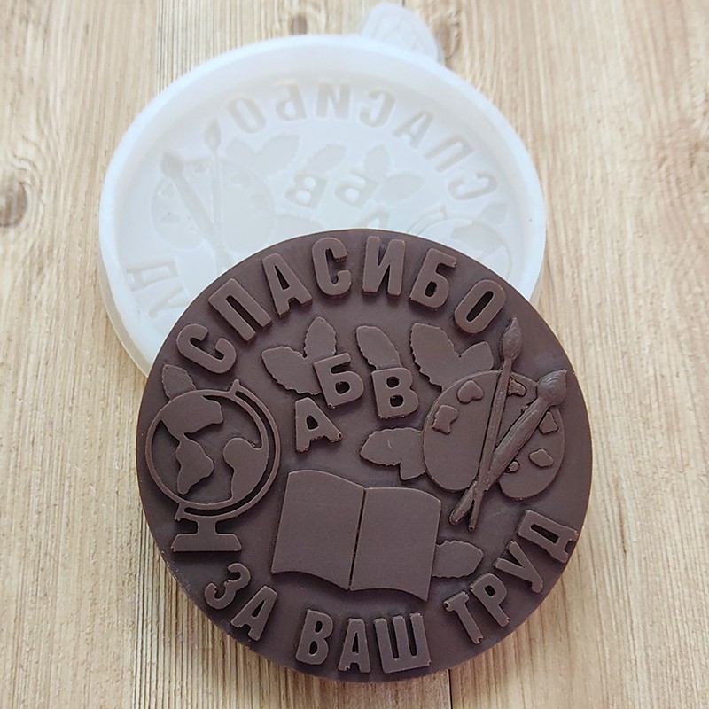 Диаметр 8,8 см, толщина 1,2 см. Вес готового изделия 70 грамм. Пищевой силикон.