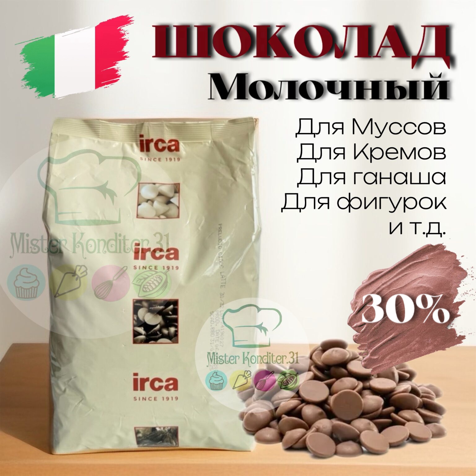 Натуральный молочный шоколад высокого качества с содержанием какао масла 30%.