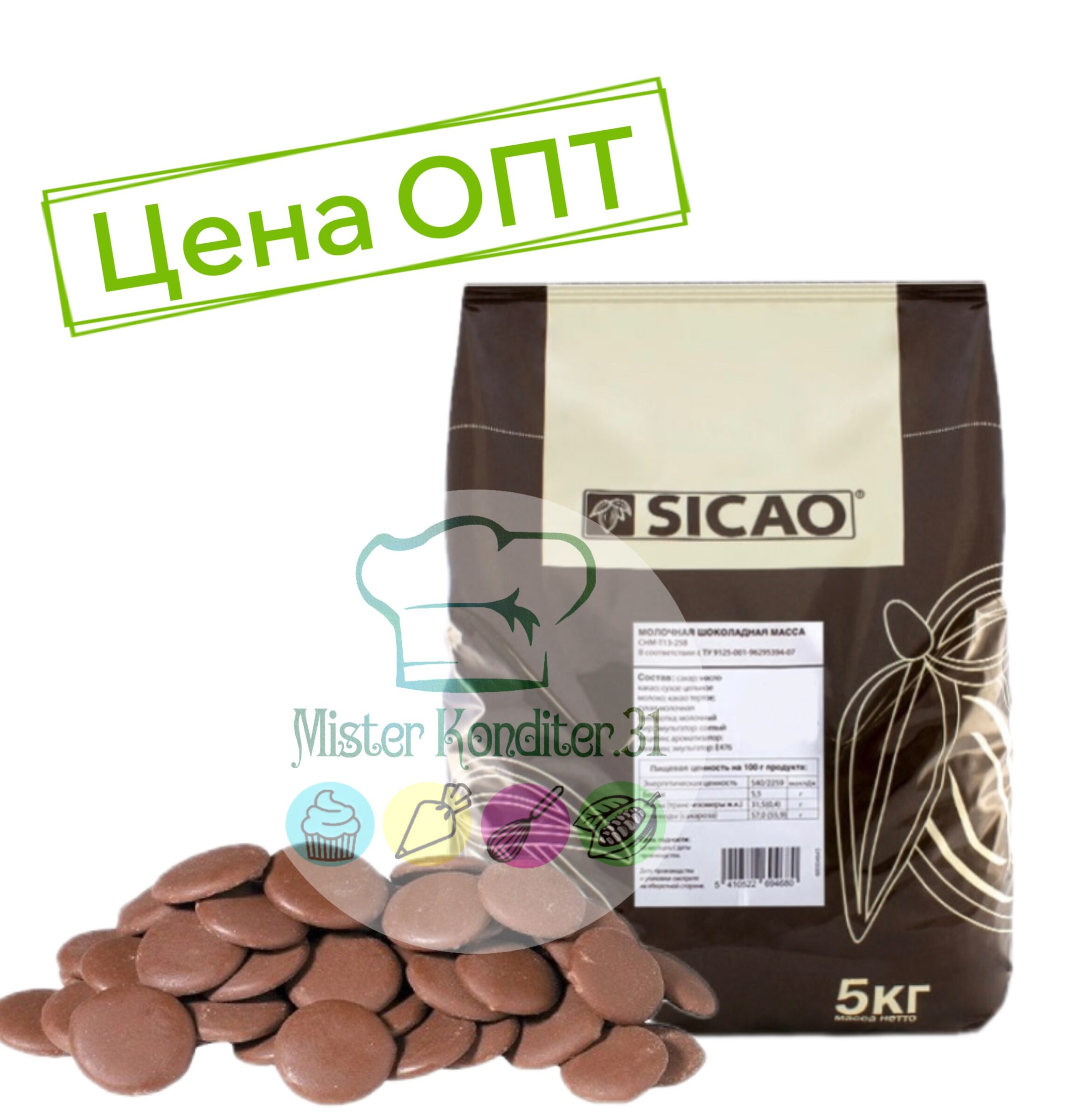 Молочный шоколад Sicao производится на фабрике Barry Callebaut в России при соблюдении стандартов качества и обладает классическим молочным вкусом.