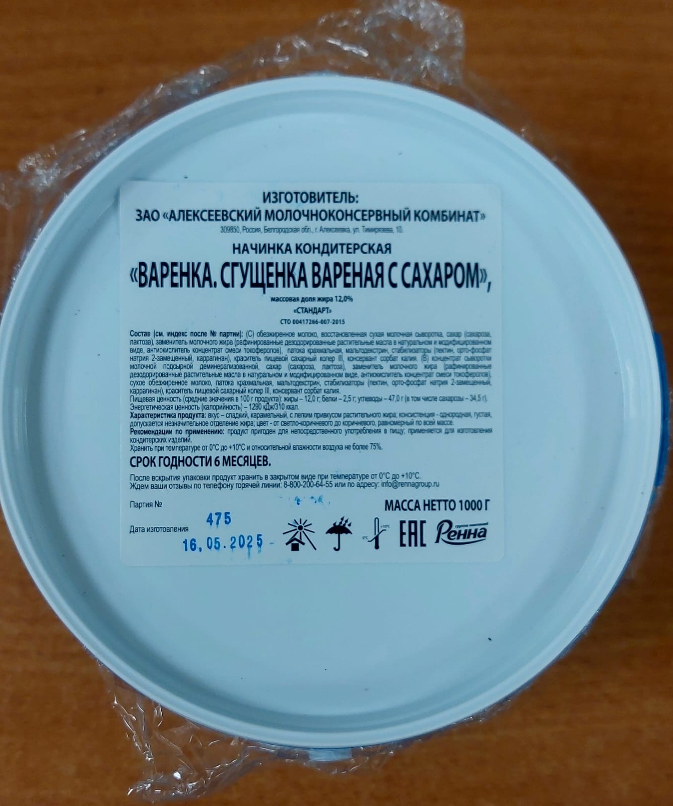 Изготовлена из молочных продуктов с добавлением сахара, растительных жиров, стабилизаторов, пищевых красителей, консервантов методом сгущения.