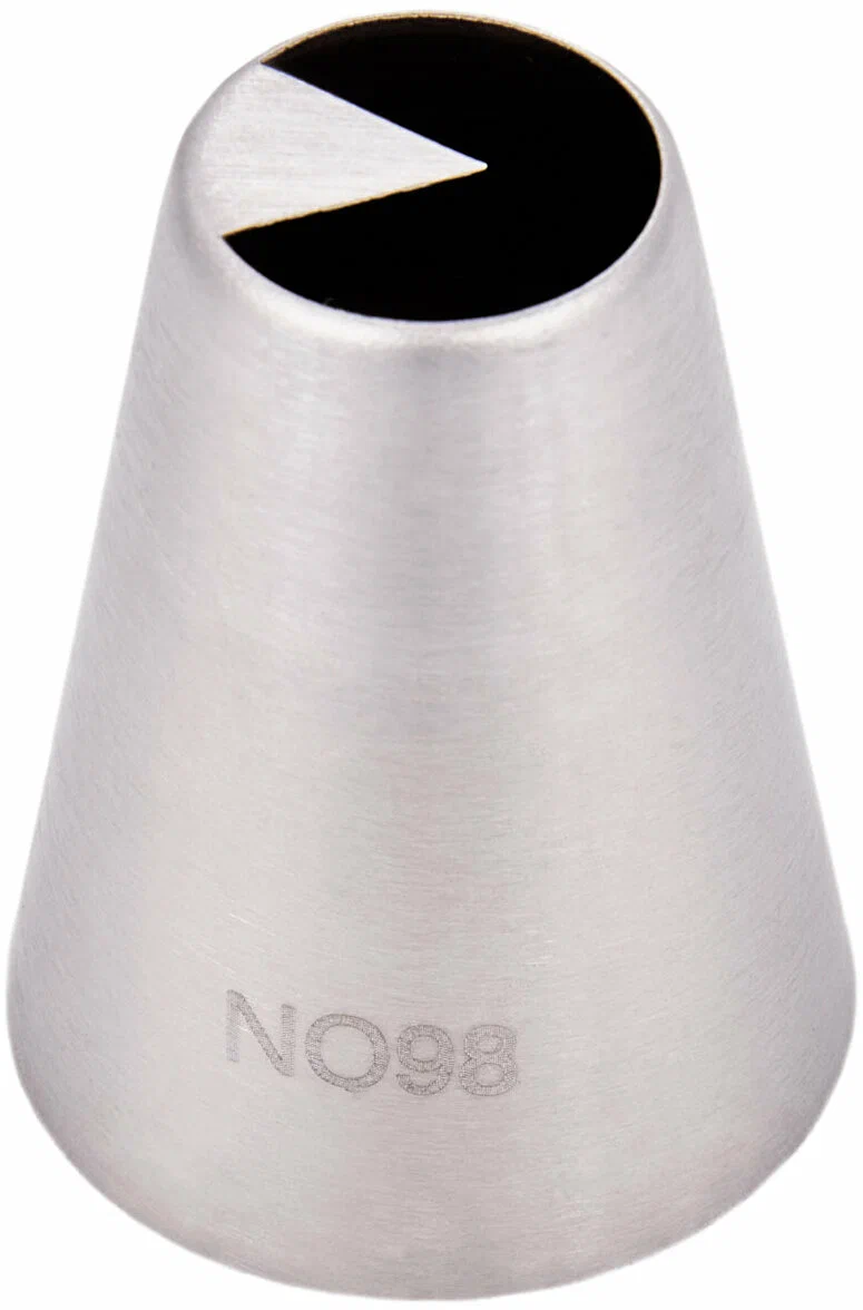 Насадка кондитерская из нержавеющей стали.Размер: высота — 41 мм, диаметр — 37 мм, отверстие — 19 мм.