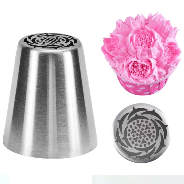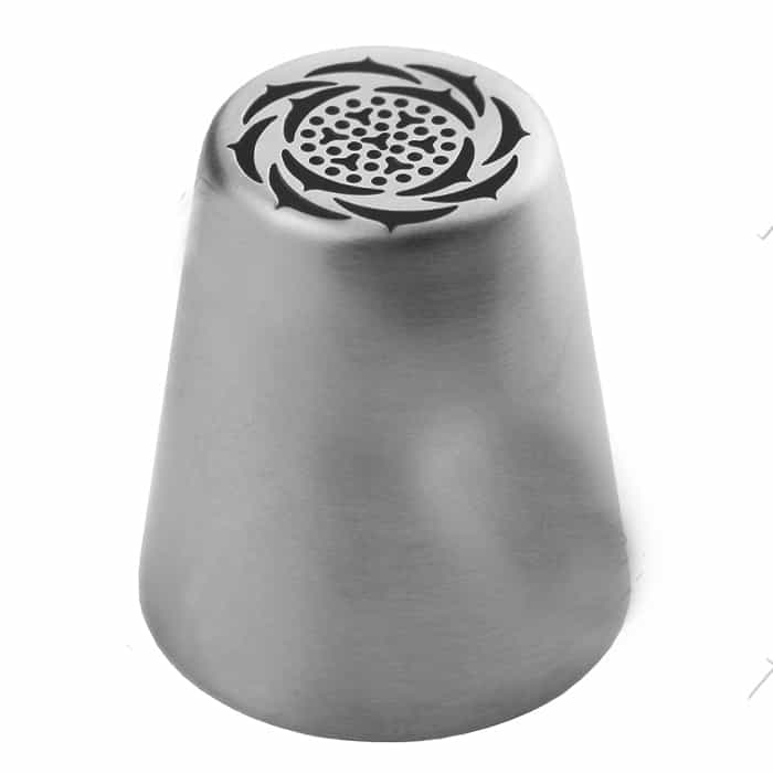 Насадка серии «Тюльпан» №5. Изготовлена из нержавеющей стали. Подходит для профессионального использования. Можно мыть в посудомоечной машине. Диаметр рабочей поверхности: 25 мм. Диаметр основания: 35 мм. Высота насадки: 38 мм.