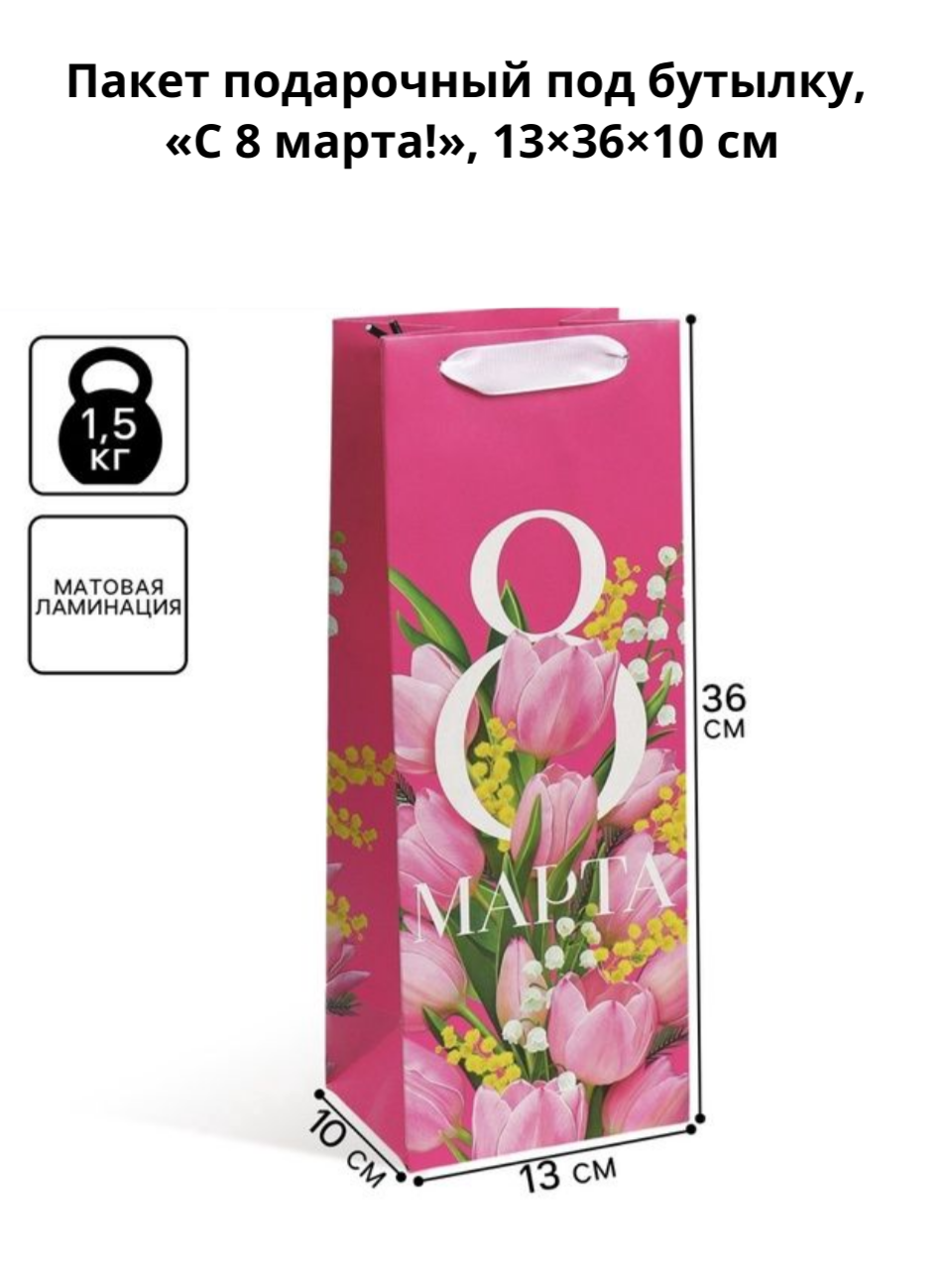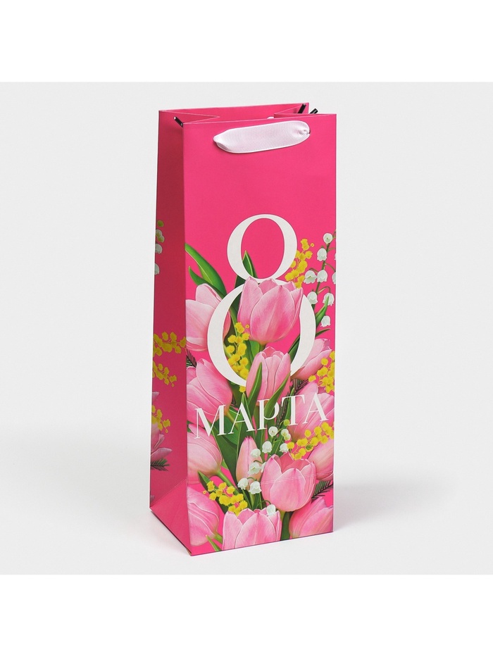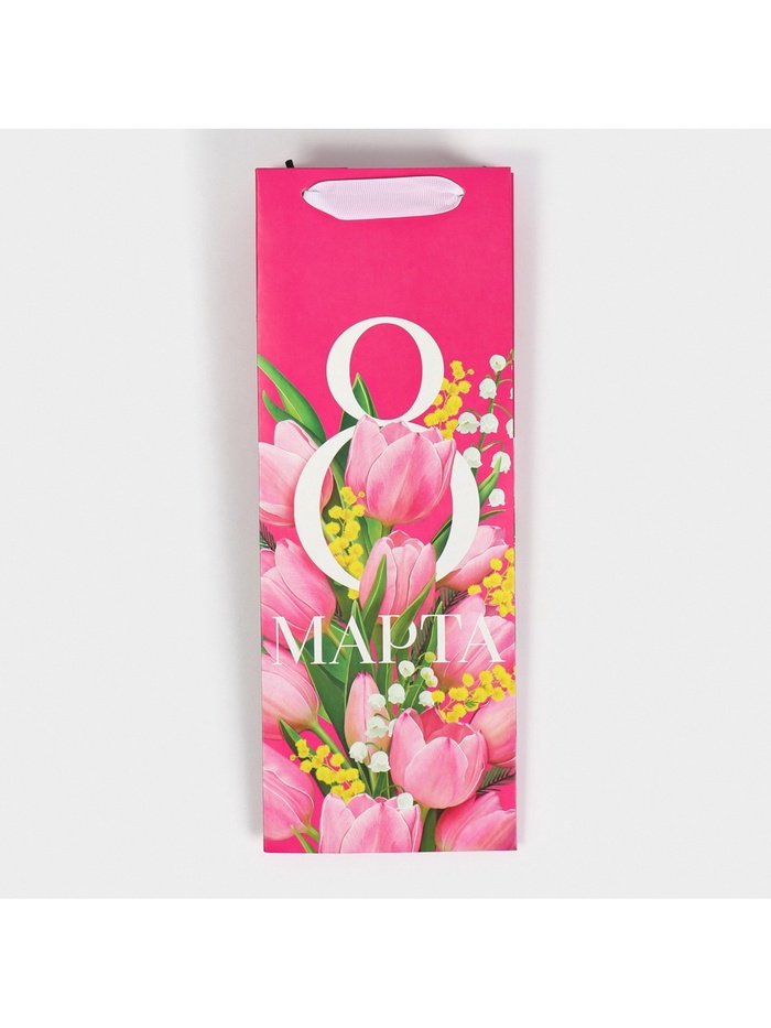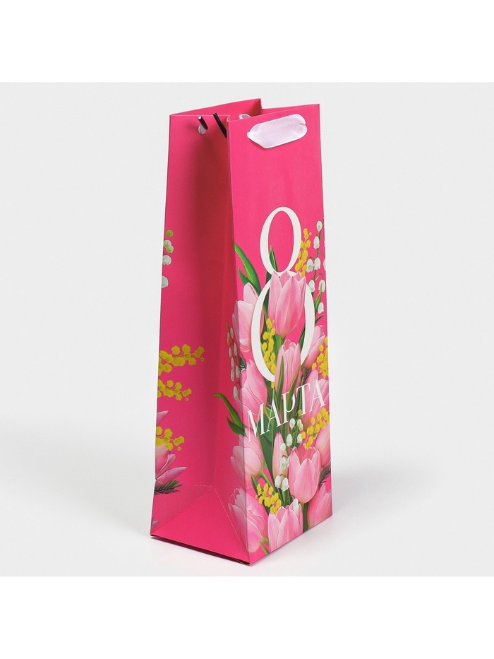 Пакет подарочный под бутылку, упаковка, «С 8 марта!», 13×36×10 см
