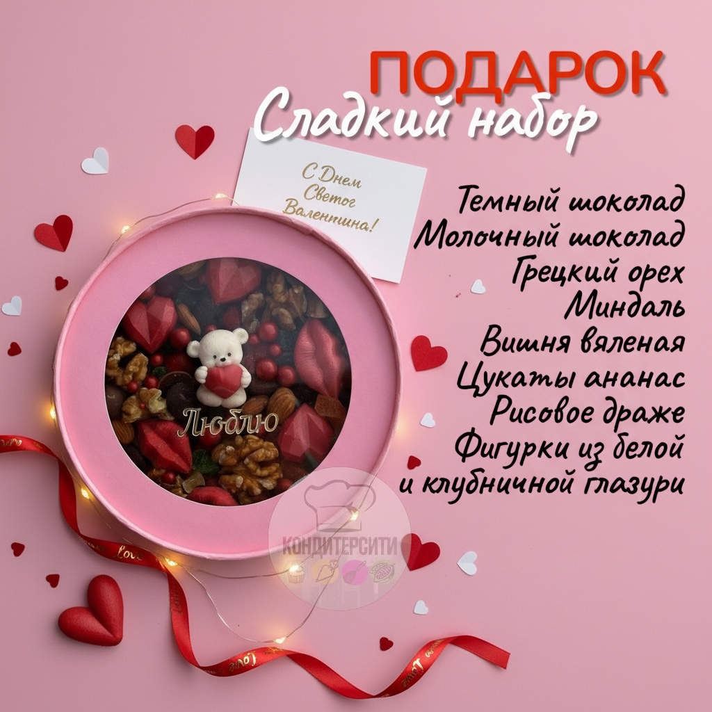 Идеальный готовый сладкий подарок на День влюбленных или другой праздник.