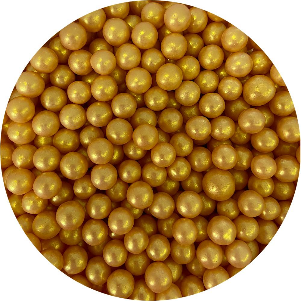 Сахарные шарики твердой консистенции с золотым металлизированным блеском, диаметром 7 мм (+/-10%), сладкие.