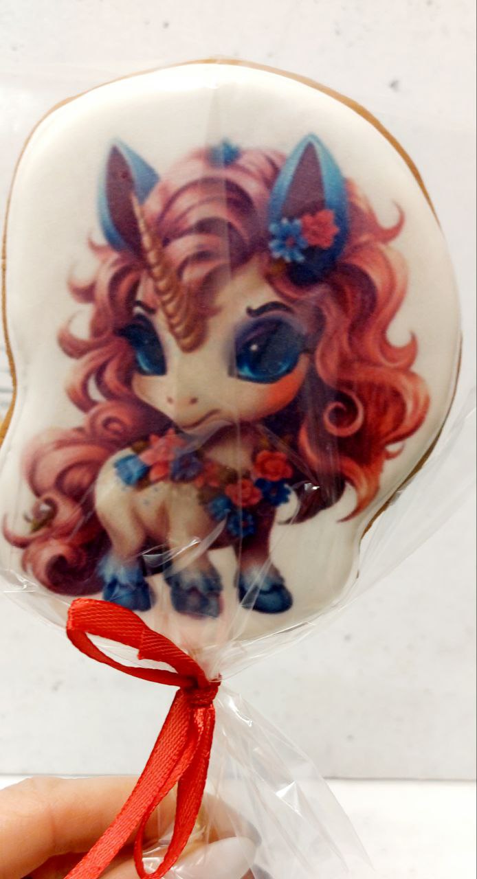 Высота со шпажкой 16 см. размеры пряника 9,5* 7.,5 см. Готовый декор для куличей, кондитерских изделий, съедобных букетов или подарочных наборов.