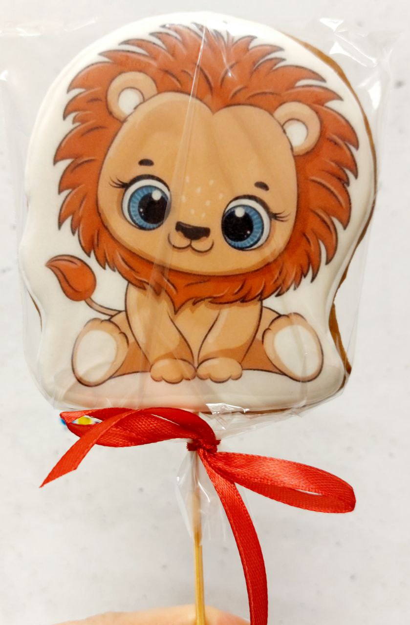 Высота со шпажкой 16 см. размеры пряника 9,5* 7.,5 см. Готовый декор для куличей, кондитерских изделий, съедобных букетов или подарочных наборов.
