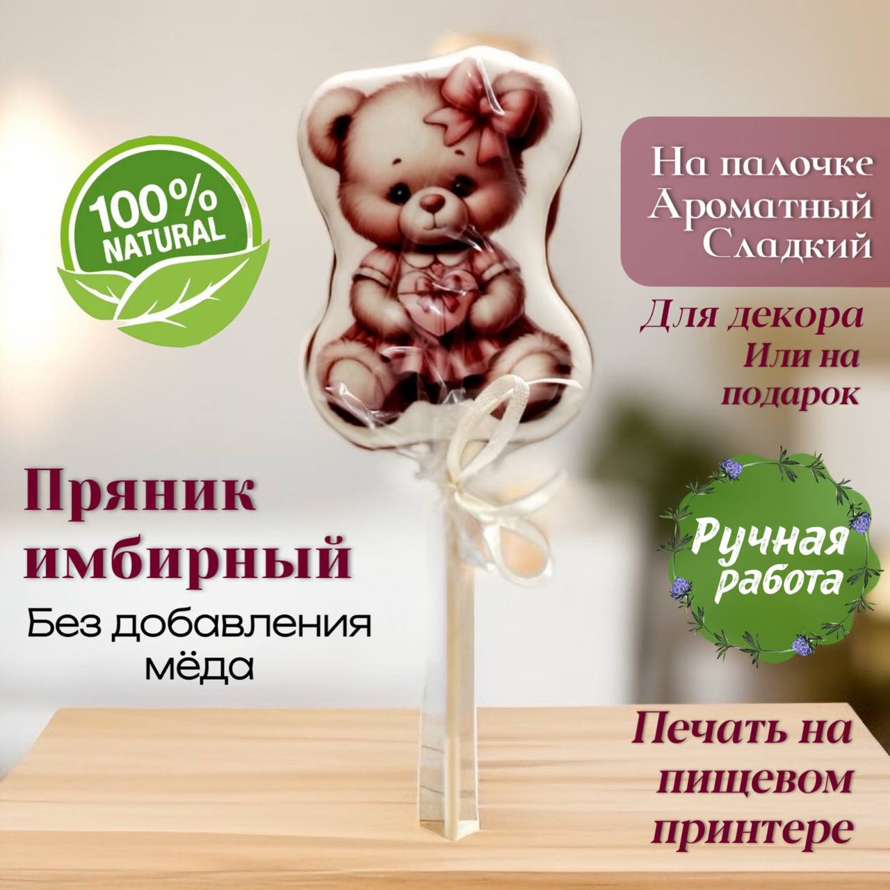 Высота со шпажкой 18,5 см. размеры пряника 9*6,5 см. Готовый декор для куличей, кондитерских изделий, съедобных букетов или подарочных наборов