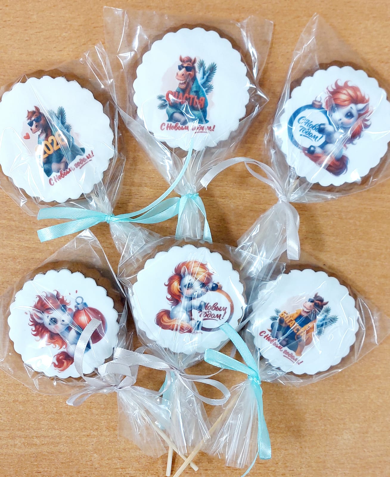 Высота со шпажкой 16 см. размеры пряника :диаметр — 7 см. Готовый декор для куличей, кондитерских изделий, съедобных букетов или подарочных наборов.