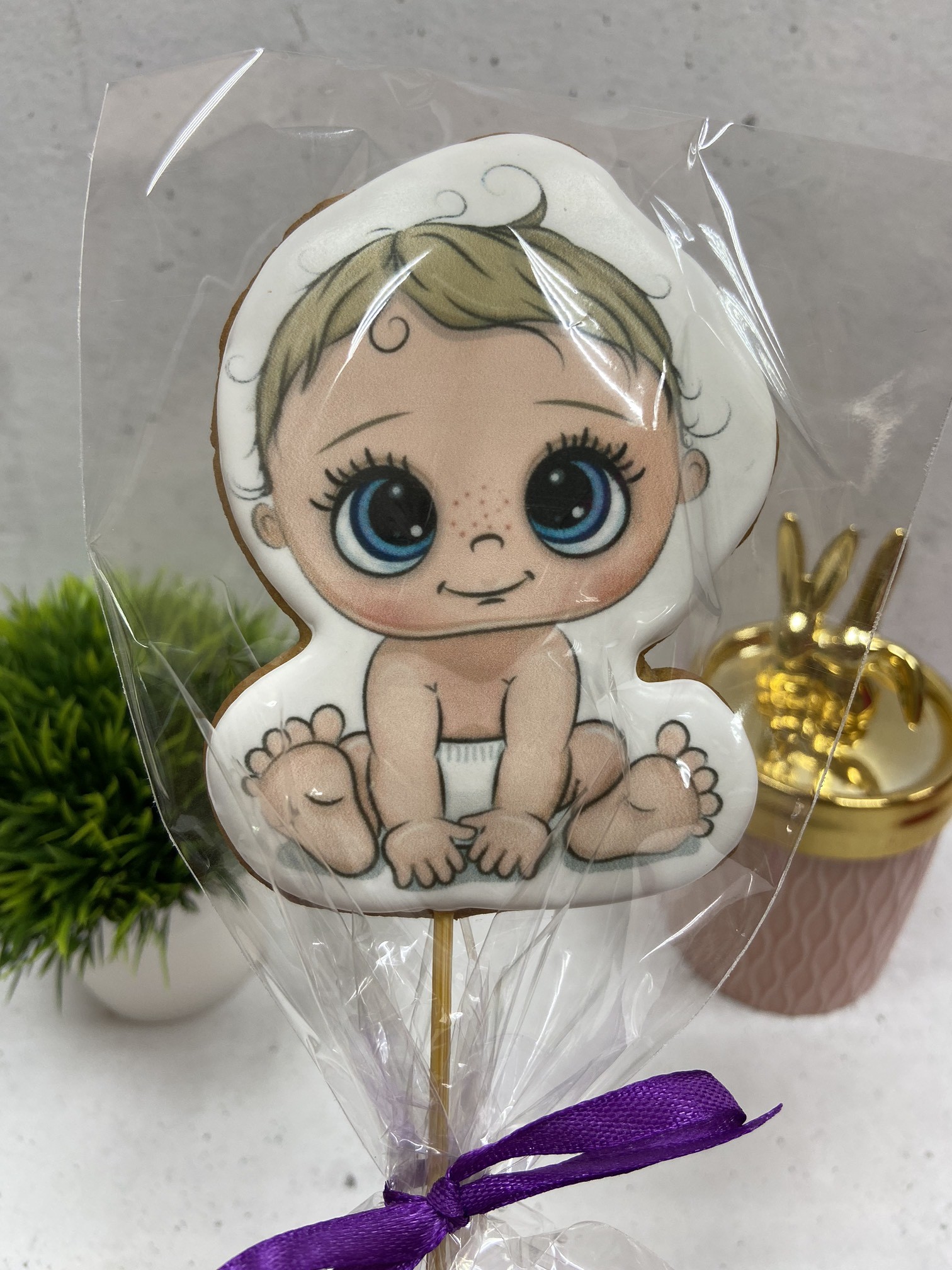 Высота со шпажкой 17 см. размер пряника 9,5 *9 см .Готовый декор для кондитерских изделий, съедобных букетов или подарочных наборов