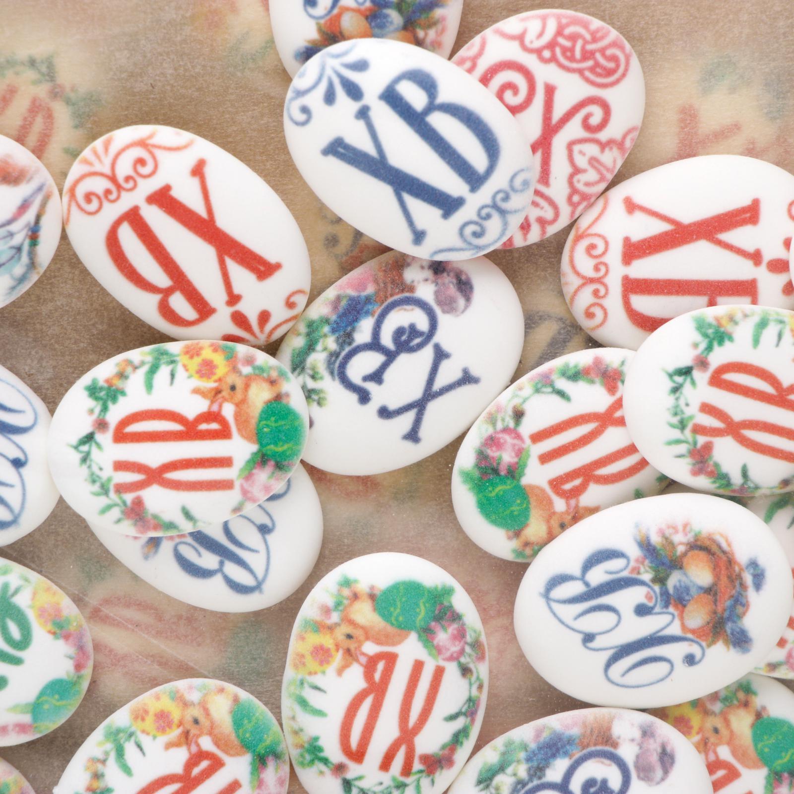Готовый сахарные медальоны для украшений кондитерских изделий.