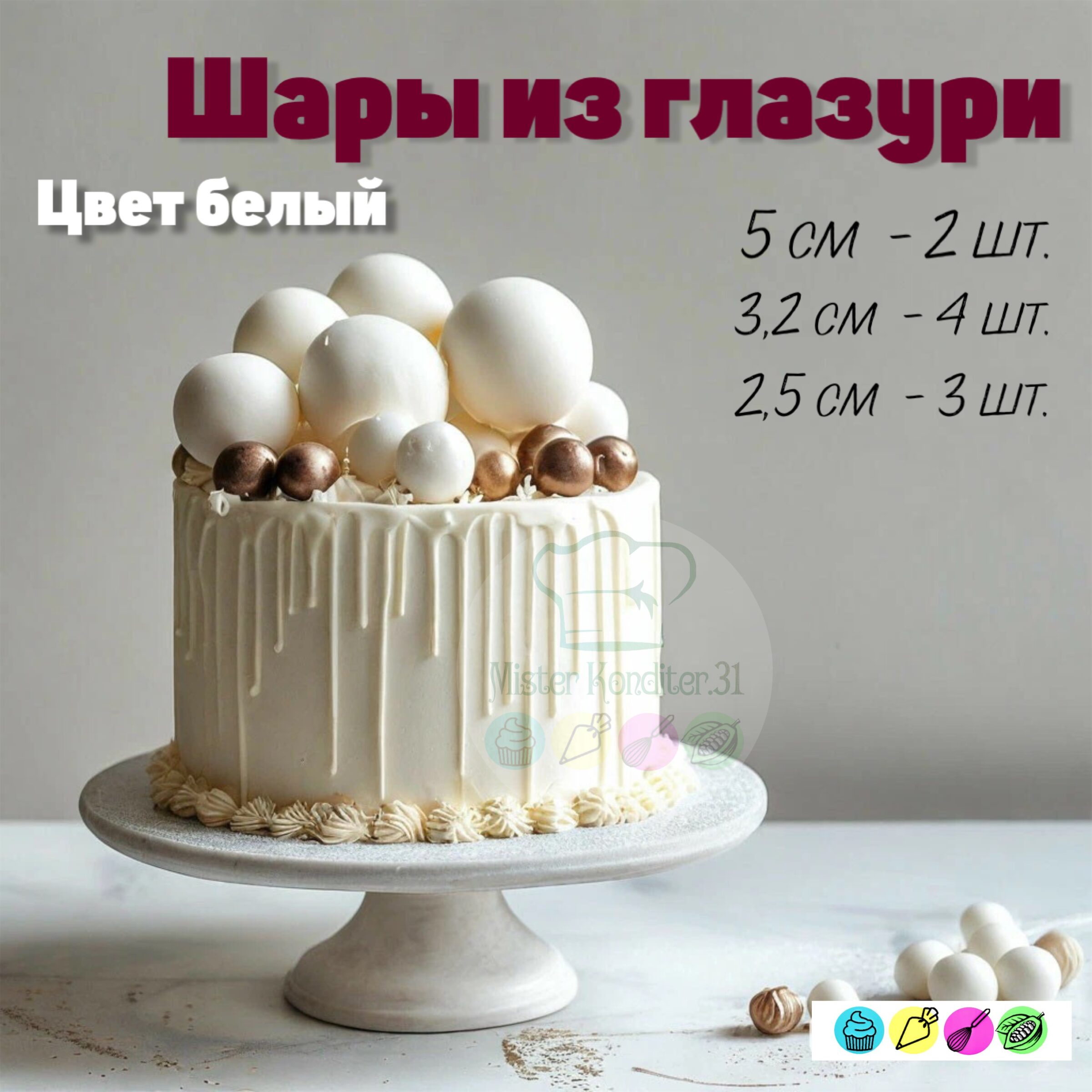 В наборе белые шары разных размеров, которые идеально дополнят дизайн кондитерского шедевра. Изготовлены из высококачественной шоколадной глазури, они обладают насыщенным вкусом и ароматом настоящего шоколада.