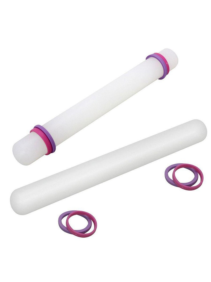 Скалка кондитерская гладкая с набором ограничителей для раскатывания мастики, теста, марципана. Длина скалки 22,5 см. Используя силиконовые кольца — ограничители высоты, вы можете обойтись и без дорогостоящей паста-машины для раскатки.