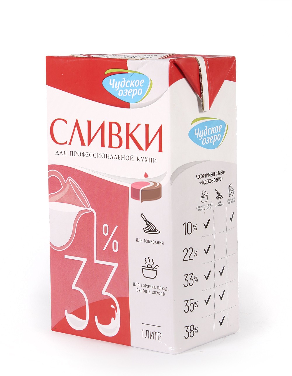 Сливки “Чудское озеро” 33% – самые популярные сливки как среди профессиональных поваров, так и у домашних кулинаров.
