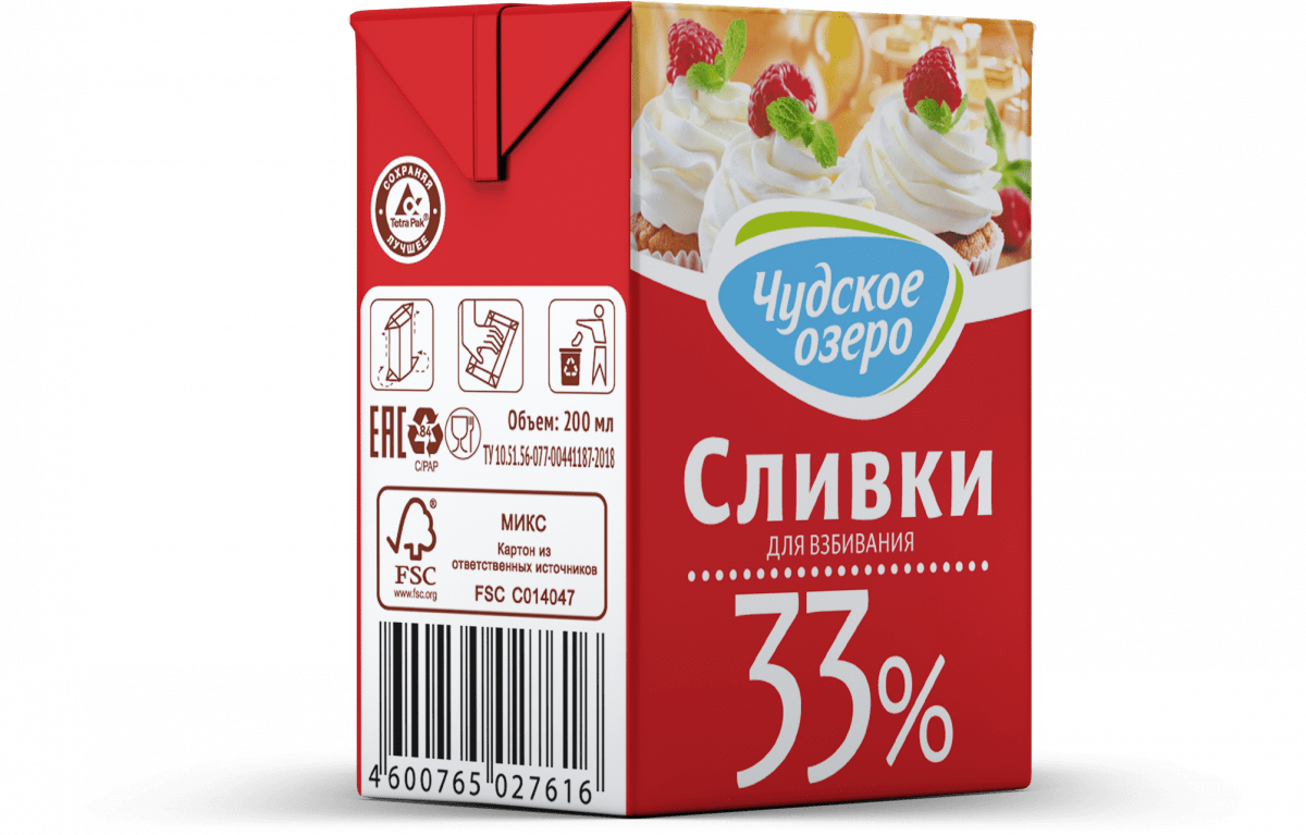 Сливки “Чудское озеро” 33% – самые популярные сливки как среди профессиональных поваров, так и у домашних кулинаров.