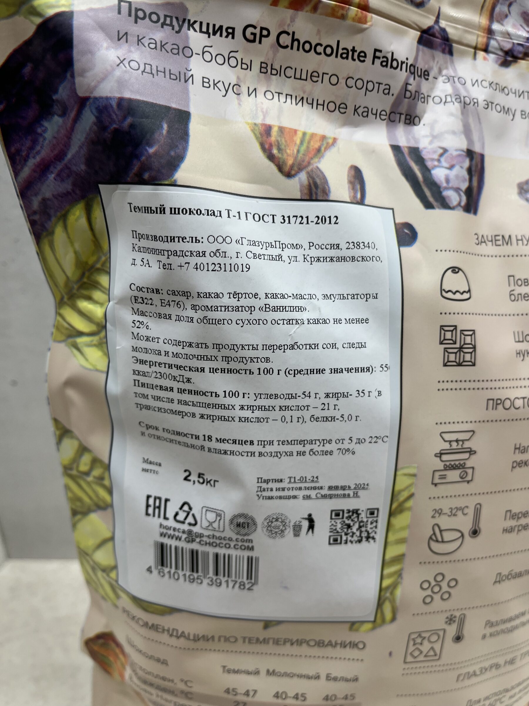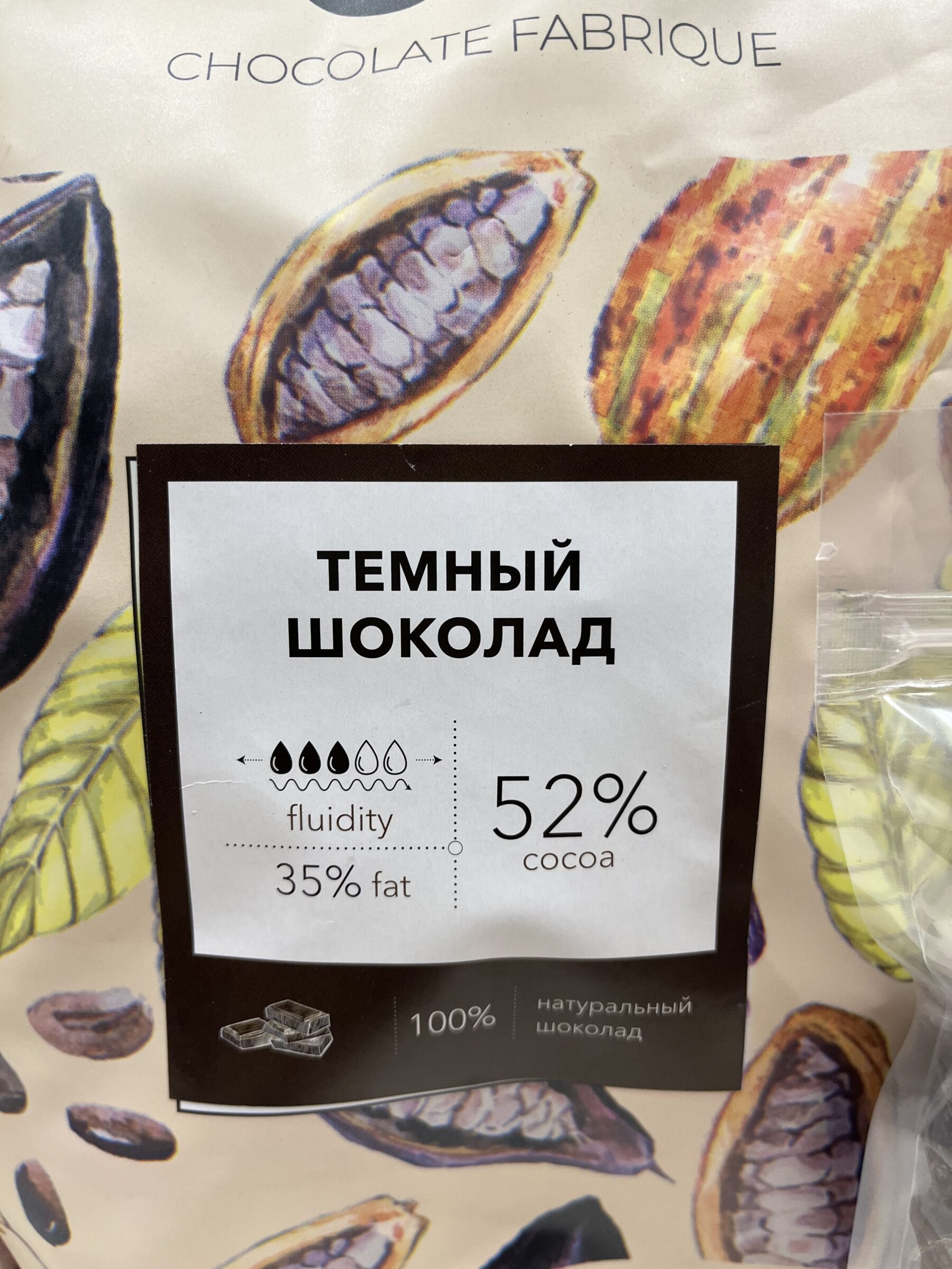 Процент какао-продуктов 52%. Текучесть 3 капли