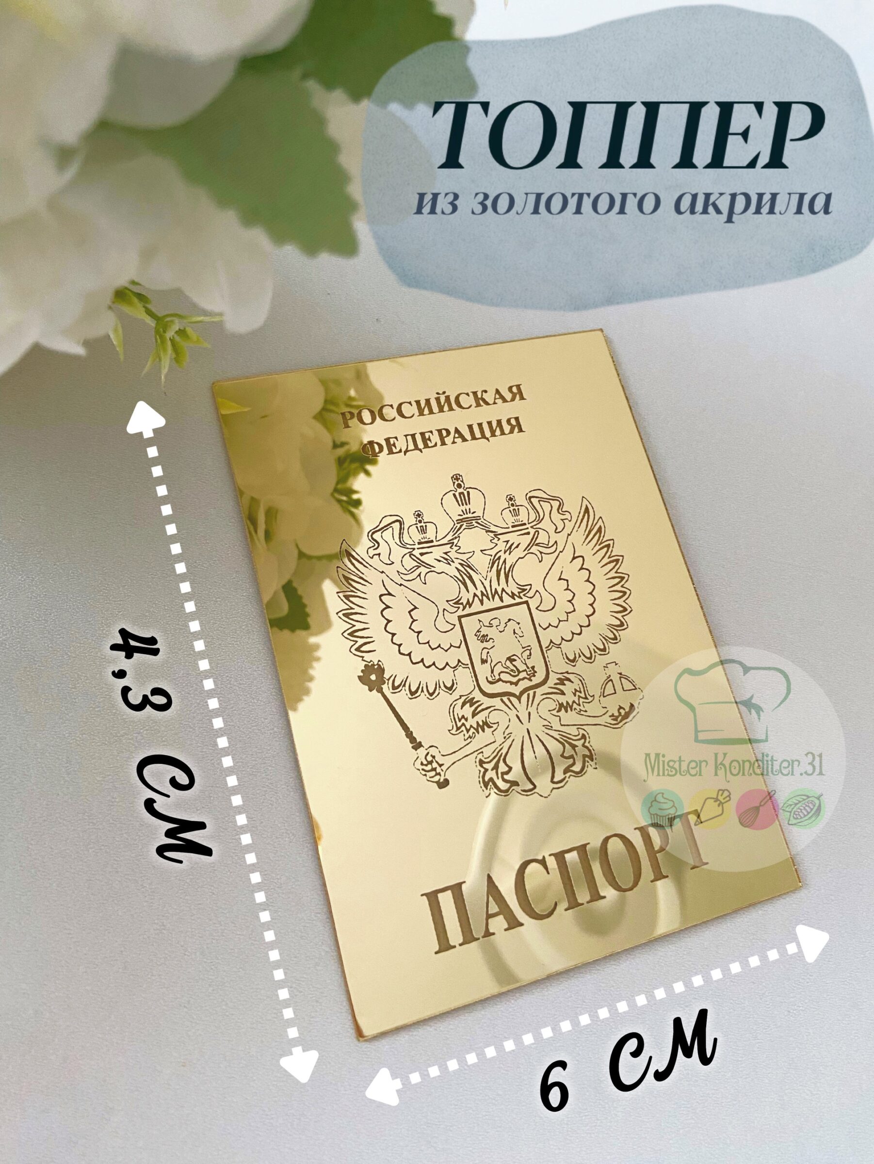 Стильный тематический декор для десертов, букетов, подарков. Снимите защитную пленку с лицевой стороны топпера с помощью иголки. В случае использования на кондитерских изделиях или других пищевых продуктах, обратную сторону топпера рекомендуем покрыть тонким слоем какао-масла или кондитерской глазурью.