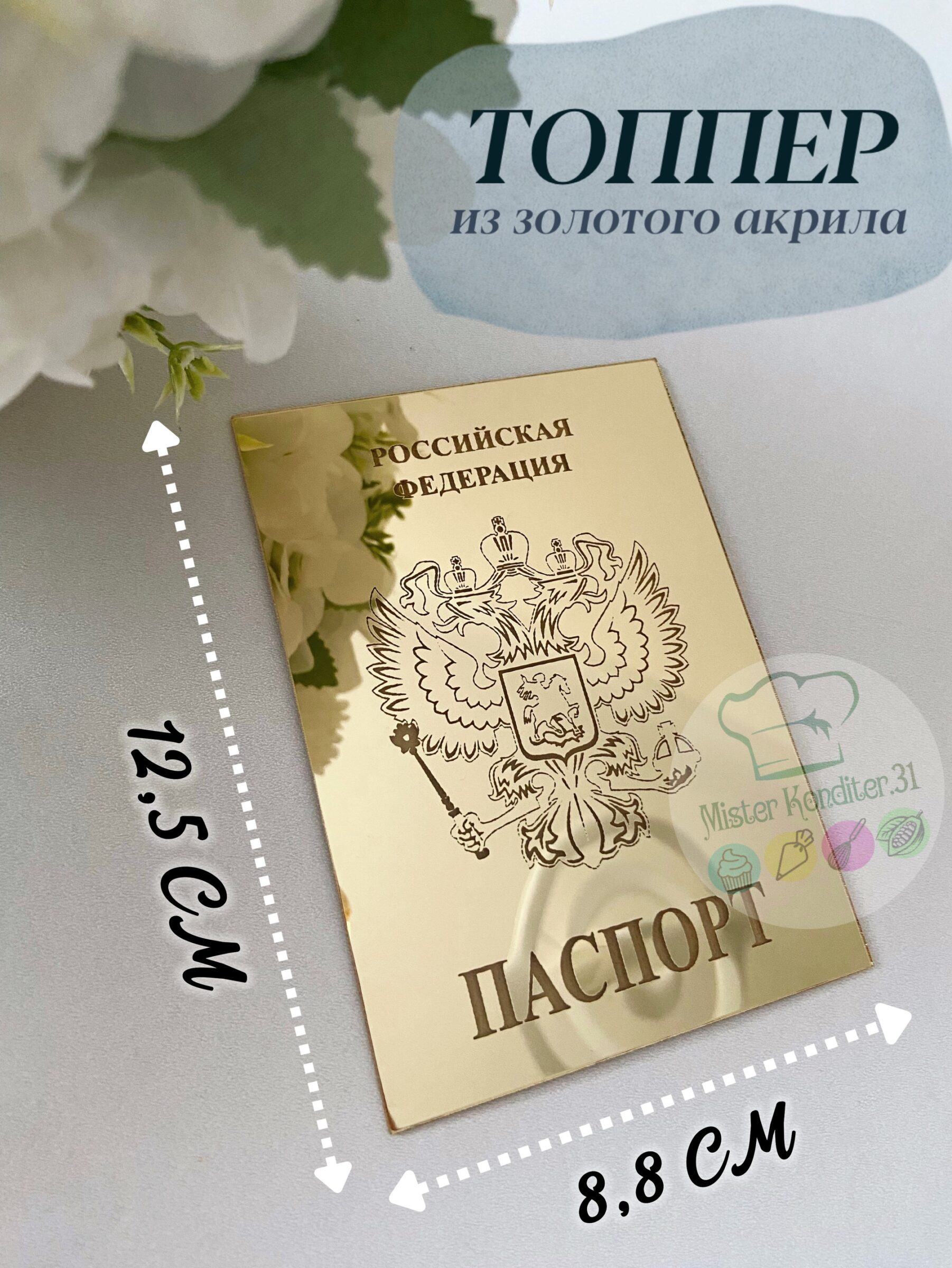 Стильный тематический декор для десертов, букетов, подарков. Снимите защитную пленку с лицевой стороны топпера с помощью иголки. В случае использования на кондитерских изделиях или других пищевых продуктах, обратную сторону топпера рекомендуем покрыть тонким слоем какао-масла или кондитерской глазурью.