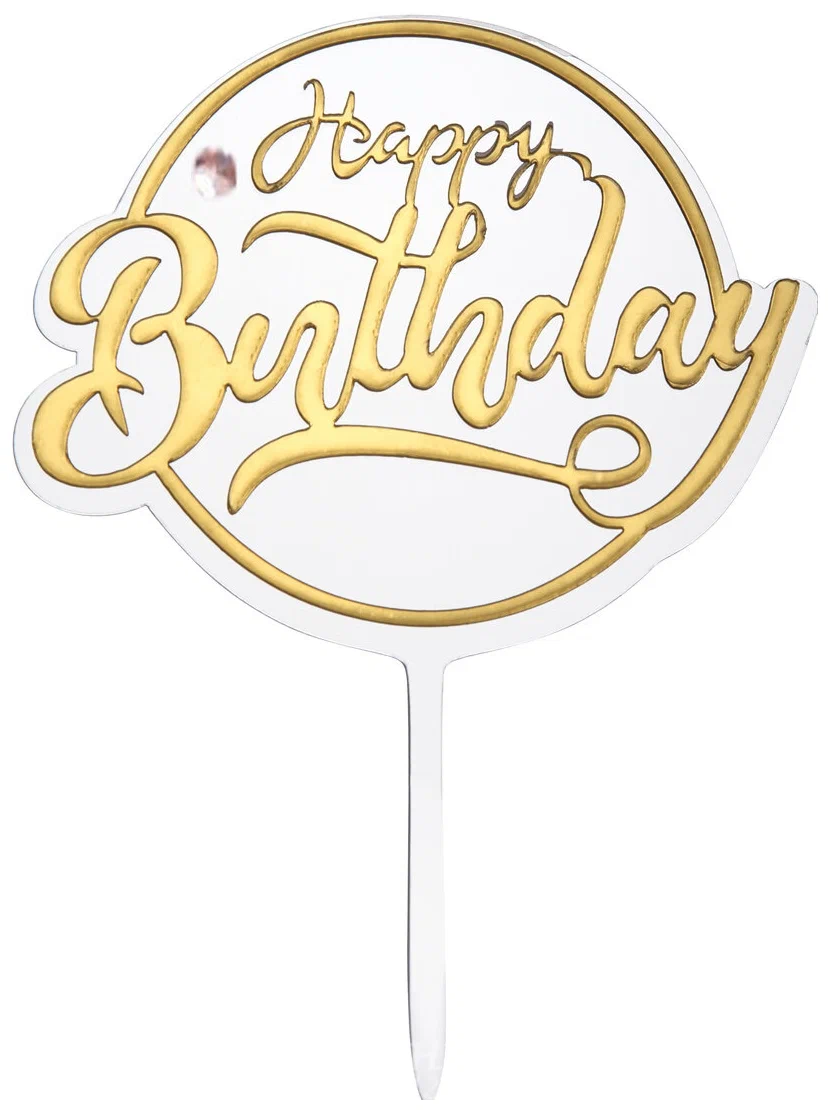 Топпер с алмазом «Happy Birthday» белый с золотой надписью