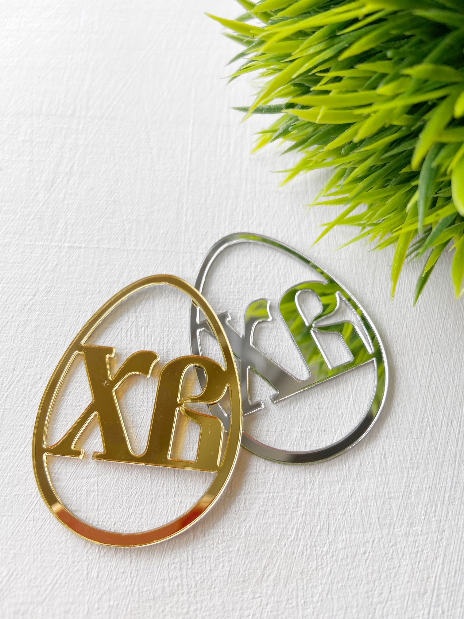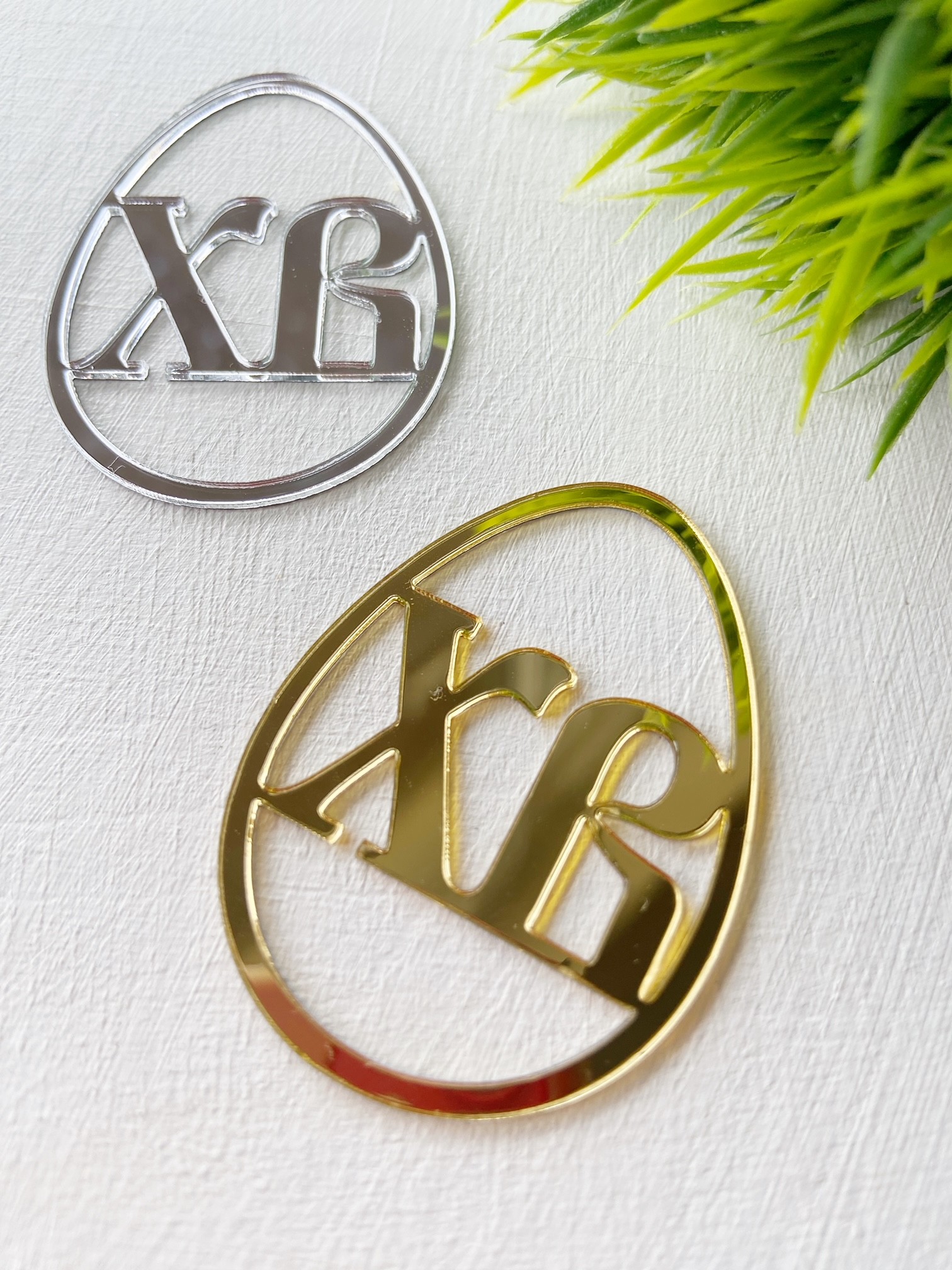 Стильный тематический декор для десертов, букетов, подарков. Снимите защитную пленку с лицевой стороны топпера с помощью иголки. В случае использования на кондитерских изделиях или других пищевых продуктах, обратную сторону топпера рекомендуем покрыть тонким слоем какао-масла или кондитерской глазурью. Топпер из серебряного акрила для декора куличей, пасхальных наборов, коробочек и подарков. Можно использовать как бирку.