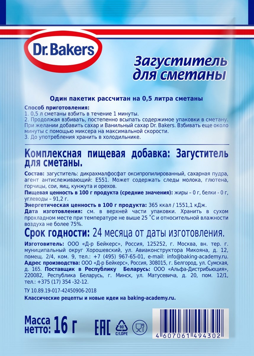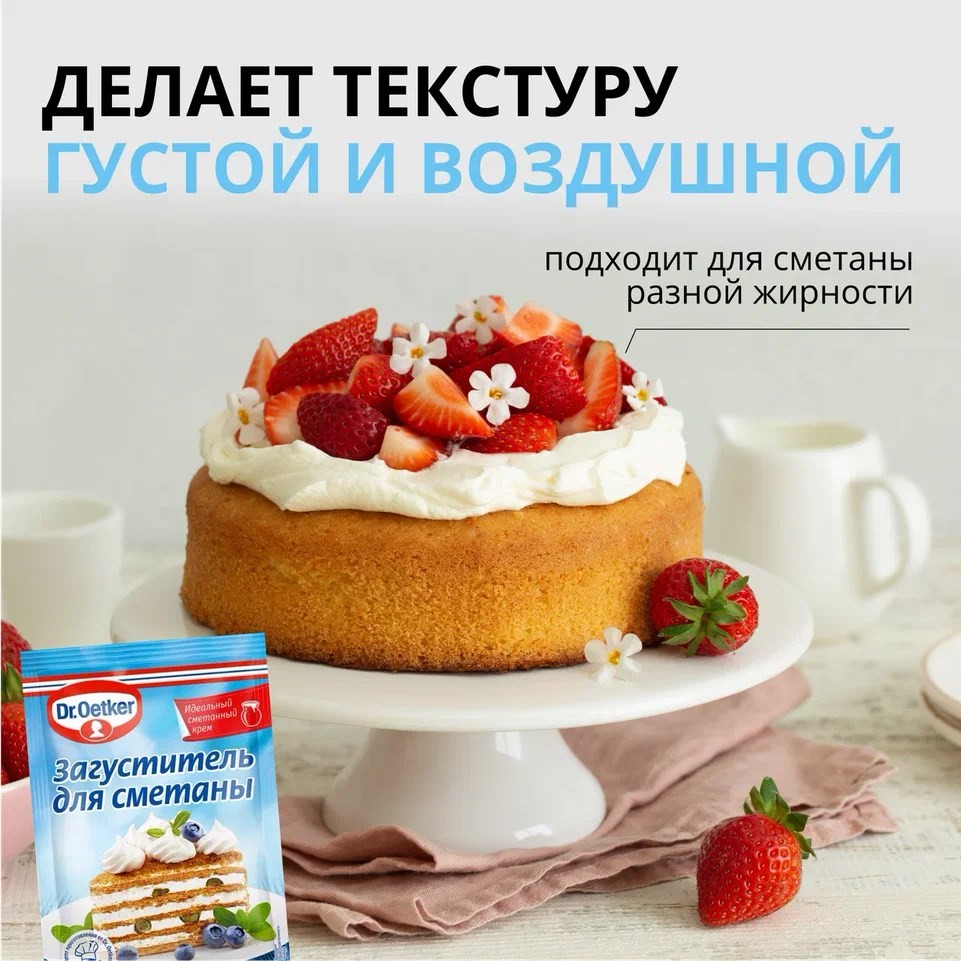 Загуститель Dr.Bakers для сметаны, 16г превратит пол-литра сметаны в плотный, нежный крем всего за пару минут.