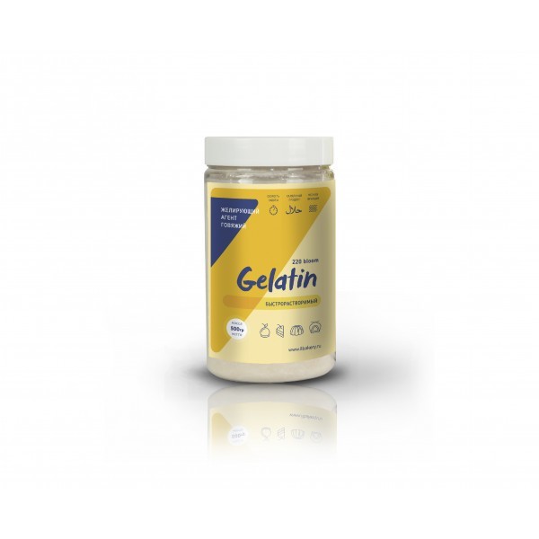 Говяжий желатин обладает высоким гелеобразующими свойством. Применяется для приготовления муссов, желе, джема, фруктовых прослоек в торт и других кондитерских изделий.